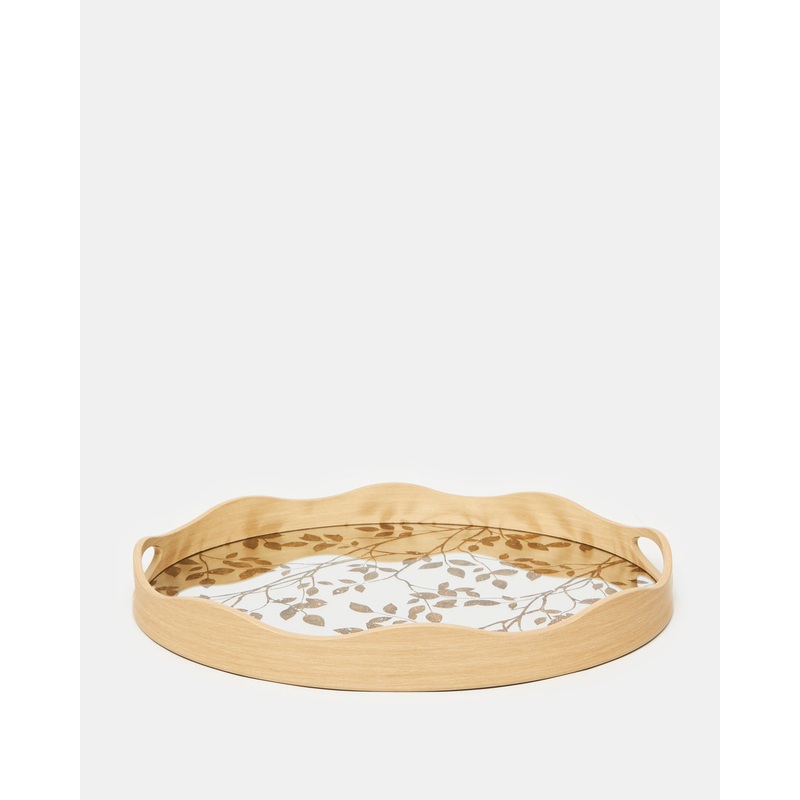 An elegant embellished tray that adds a touch of sophistication to your home. Perfect for serving or as a decorative centrepiece on tables and consoles.Section: Home-DiningColour: GoldPattern: Floral PrintSize/Dimensions: Height 4.5cm x Diameter 43.5cm x D