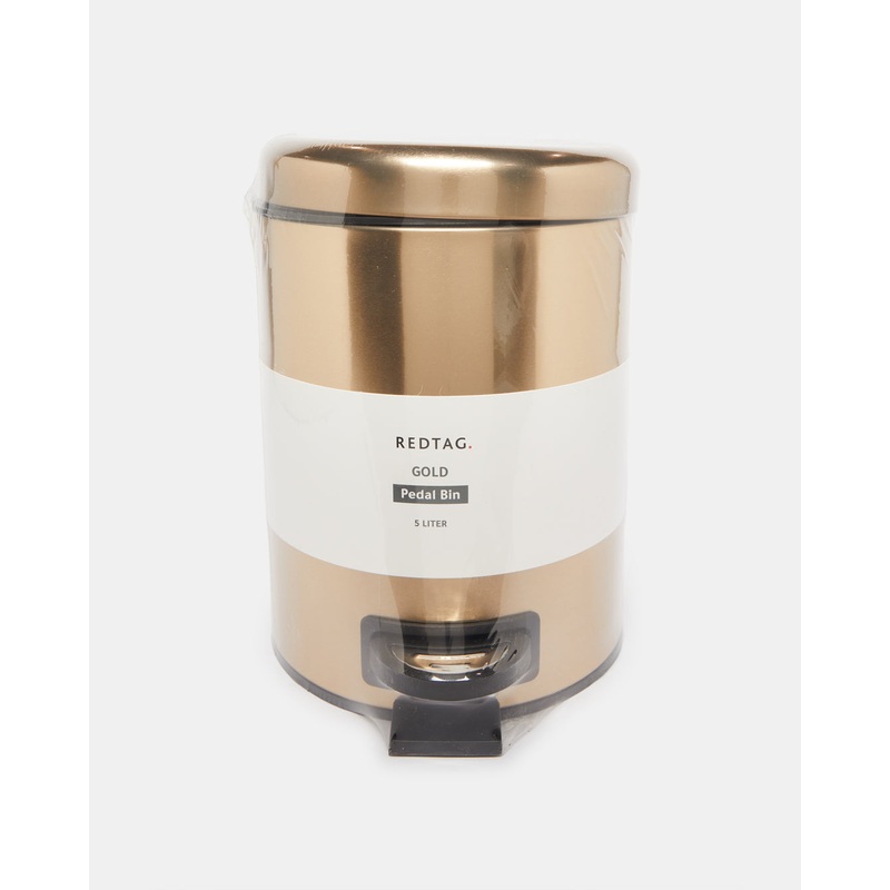 A pedal bin for your bathroom. This piece is a great way to organize your bathroom. The inner bucket is removable while the handle helps to hide the plastic bag.Section: Home-BathroomColour: GoldPattern: PlainSize/Dimensions: Height 28cm x Diameter 20cmMat