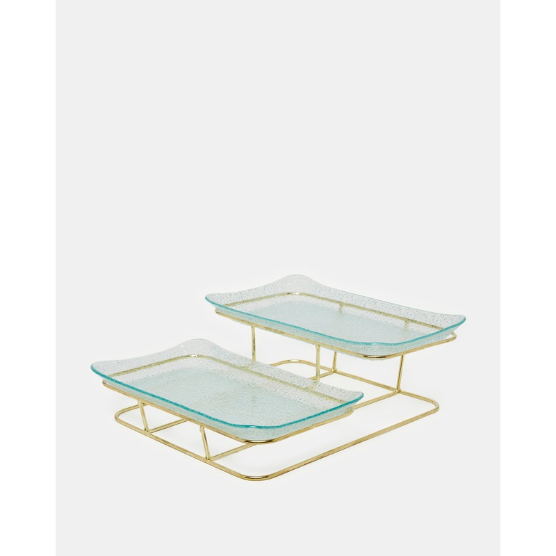 Serve in style with this elegant serving platter featuring a raised stand. Ideal for showcasing desserts, fruits, or appetisers, it adds height, charm, and sophistication to any table setting.Section: Home-DiningColour: GoldPattern: PlainSet Includes: 2x P