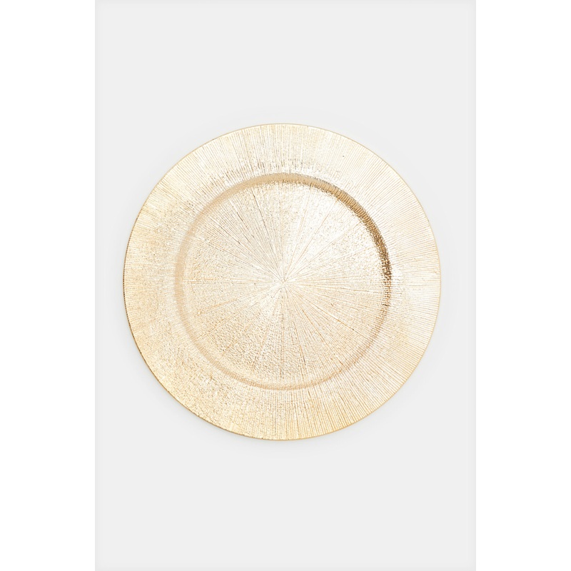Elevate your table setting with this elegant charger plate. Designed to add a sophisticated touch to your dining experience, it's the perfect base for showcasing your culinary creations.Section: Home-DiningColour: GoldPattern: TexturedSize/Dimensions: Diam
