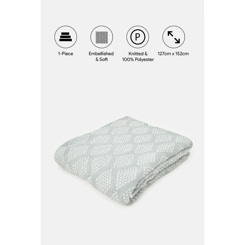 Unveil the bliss of evenings! Our soft, warm throws turn your favorite spot into a haven of relaxation, inviting you to unwind in a cloud of plush comfort.Features a soft material, embellished knitted design.Section: Home-BedroomColour:Grey/WhitePattern:Kn