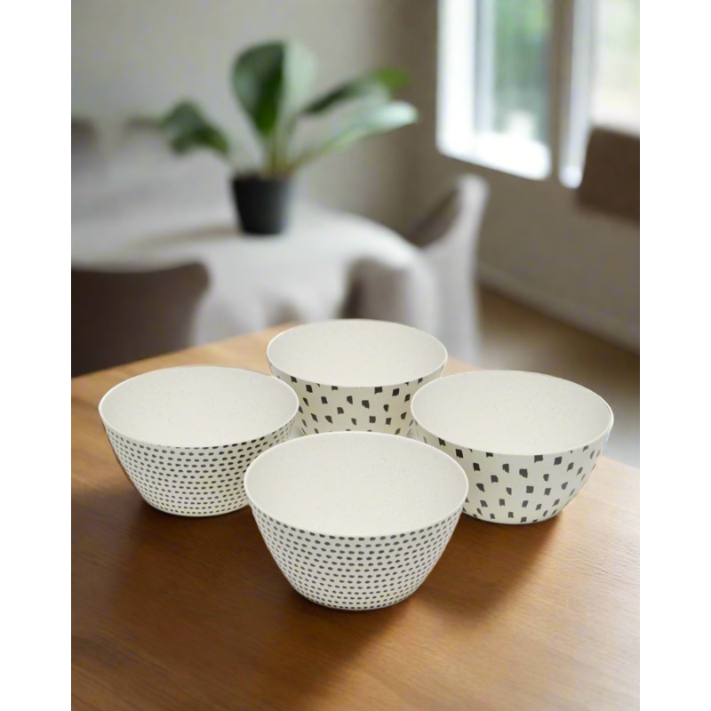 Serve up fresh flavors with our Bamboo Bowl Set. Lightweight and durable, these bowls are perfect for any meal, from breakfast to dinner.Section: Home-DiningColour: MulticolourPattern: PrintedSet Includes: 4x BowlDimensions: Diameter 14cmCare Instructions: