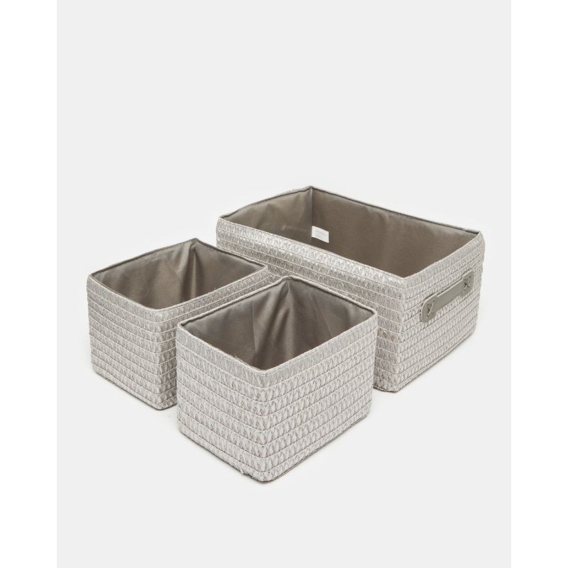 Enhance the organization and aesthetic of your bathroom with this elegant Basket Set. Designed to keep your space tidy and clutter-free, this set includes 3 different sizes of baskets that cater to all your storage needs.Section: Home-BathroomColour: GreyP