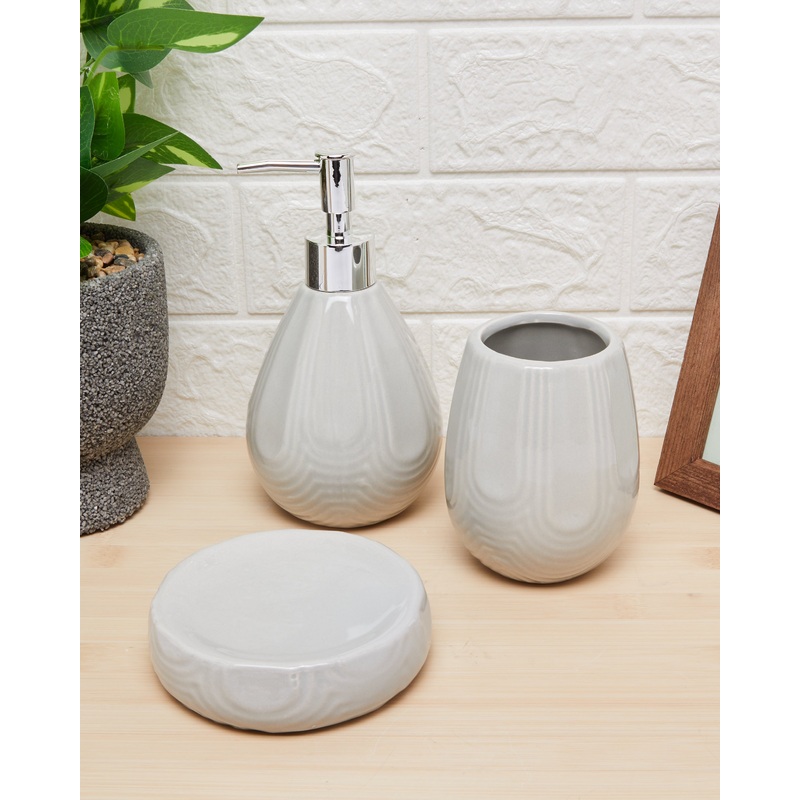 Transform your bathroom counter from functional to fabulous with our complete toiletry set! This trio of essentials combines style and practicality, making your daily routine a touch more luxurious.Section: Home-BathroomColour: GreyPattern: TexturedSet Inc