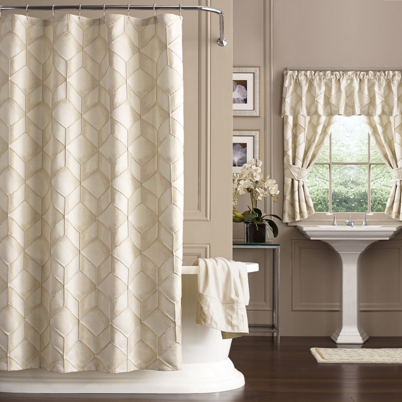 This intricately woven jacquard shower curtain in a lovely ivory colorway, adds a contemporary feel and complements any bathroom decor. The unique woven puckered geometric pattern is highlighted with shadowing accents to give it a 3-Dimensional look.