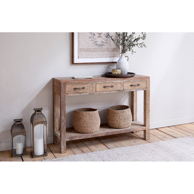 FKX85744075795Ibo Reclaimed Wood 3 Drawer Console Table – Natural