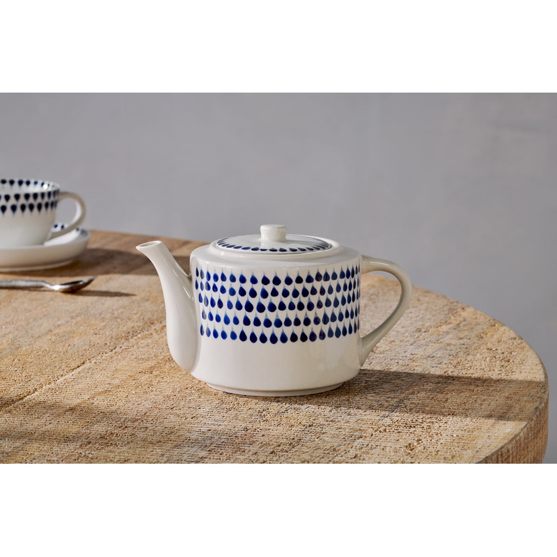 FKX85744076835Indigo Drop Teapot - Cream & Indigo