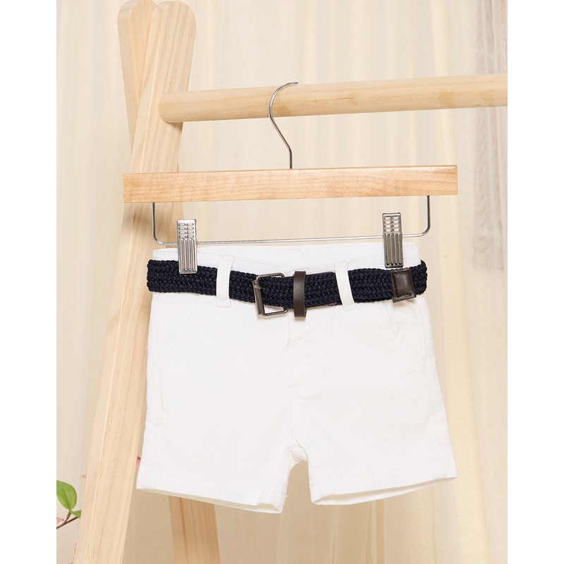Adorable and comfy belted casual shorts, designed for easy movement and style. Perfect for playful days and everyday outings.Gender: Infant Boys (3 to 24 Mths)Colour: WhitePattern: PlainCare Instructions: Machine Wash ColdFabric: 98% Cotton 2%ElastinStyle