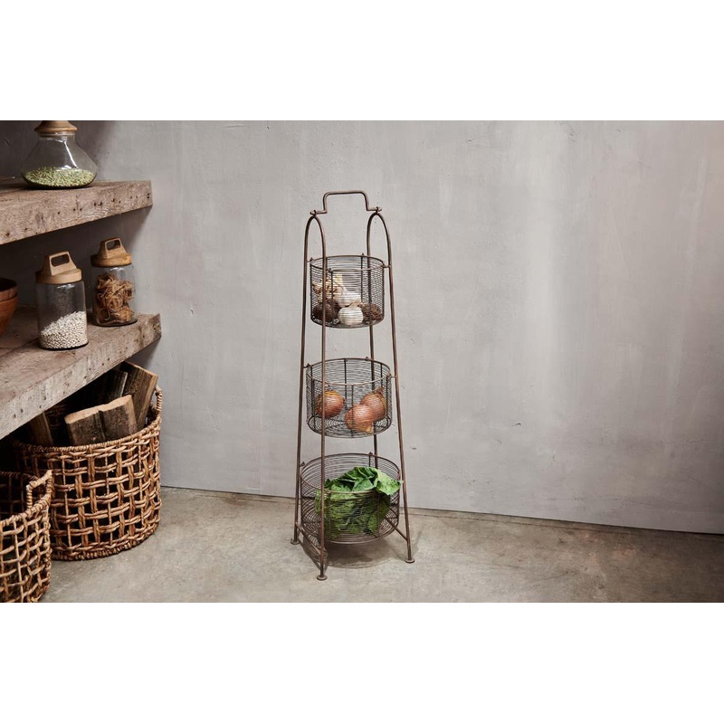 The warm tones of our aged brass Inkollu Three-Tiered Storage Stand is a stylish standalone piece, perfect for storing fruit & vegetables and other food items. Style in a kitchen or larder.
