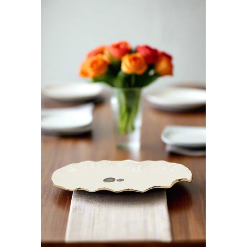 This ivory platter will be a stunning addition to your collection. The platter features a classic design that enhances its look and adds value to Ramadan's gathering tables.Section: Home-DiningColour: IvoryPattern: TexturedSize/Dimensions: Length 30.5cm x