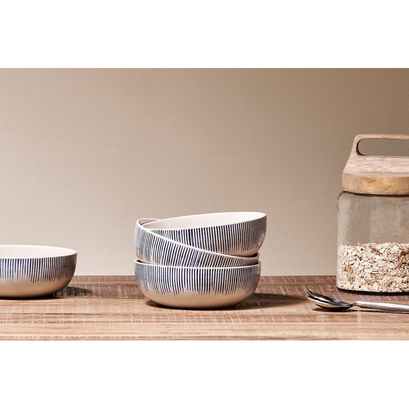 Our Karuma Ceramic Cereal Bowls are handmade in Vietnam. Their distinctive design is hand etched and hand painted creating this eye-catching collection. Cereal is a daily pleasure in this stylish bowl, but it works just as well for puddings.