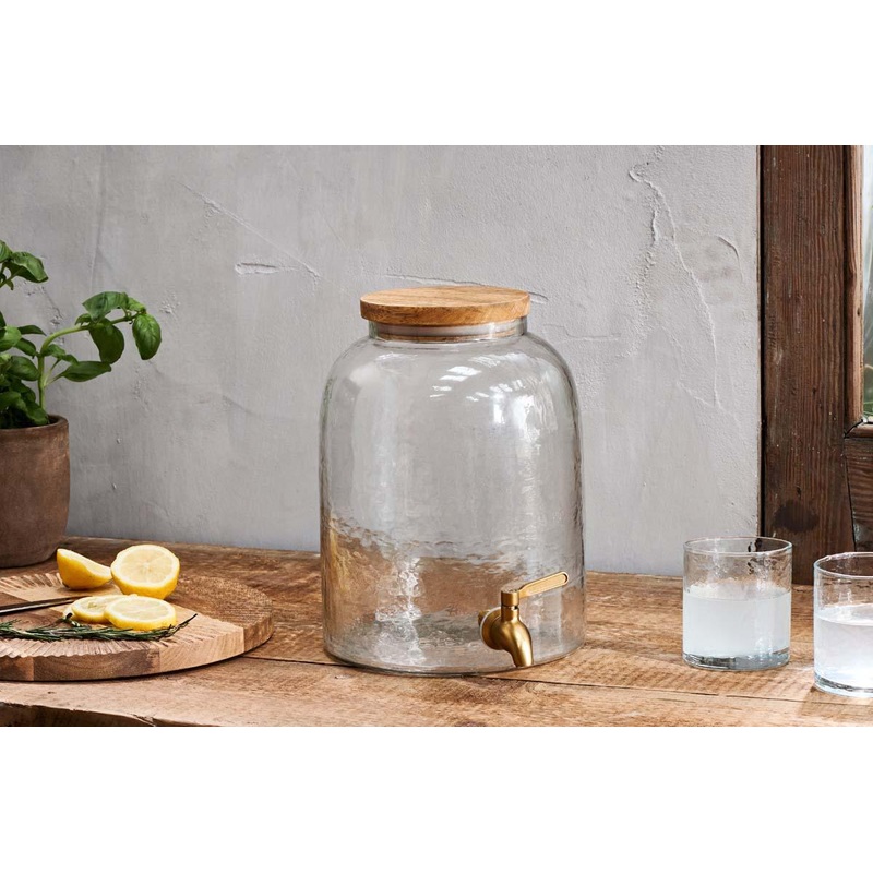 The perfect entertaining piece, our Kitto Water Dispenser is handmade from recycled glass. The beautiful textured glass is crafted using traditional tools, creating this this eye-catching hammered finish. The top is handmade from sustainable mango wood wit