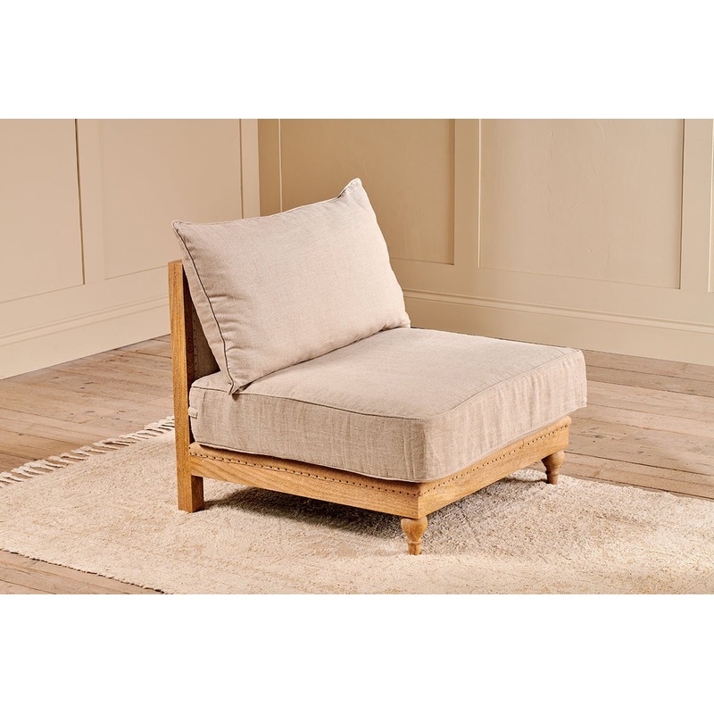 The Krissa module forms part of our Modular Sofa collection. Its frame has been expertly constructed from solid mango wood and its legs have a simple turned detail. The back and base of the corner are upholstered in natural linen, as are the firm seat cush