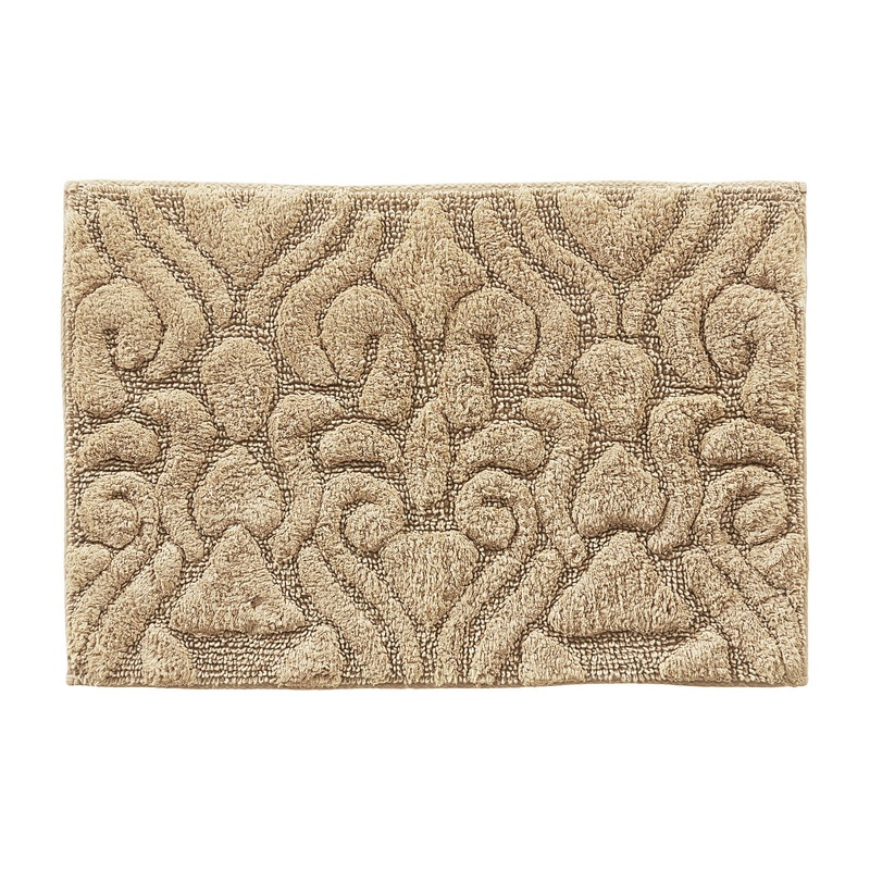 This beautifully detailed bath rug is sculpted in a high-pile cotton damask design with a textured looped ground to give it definition.