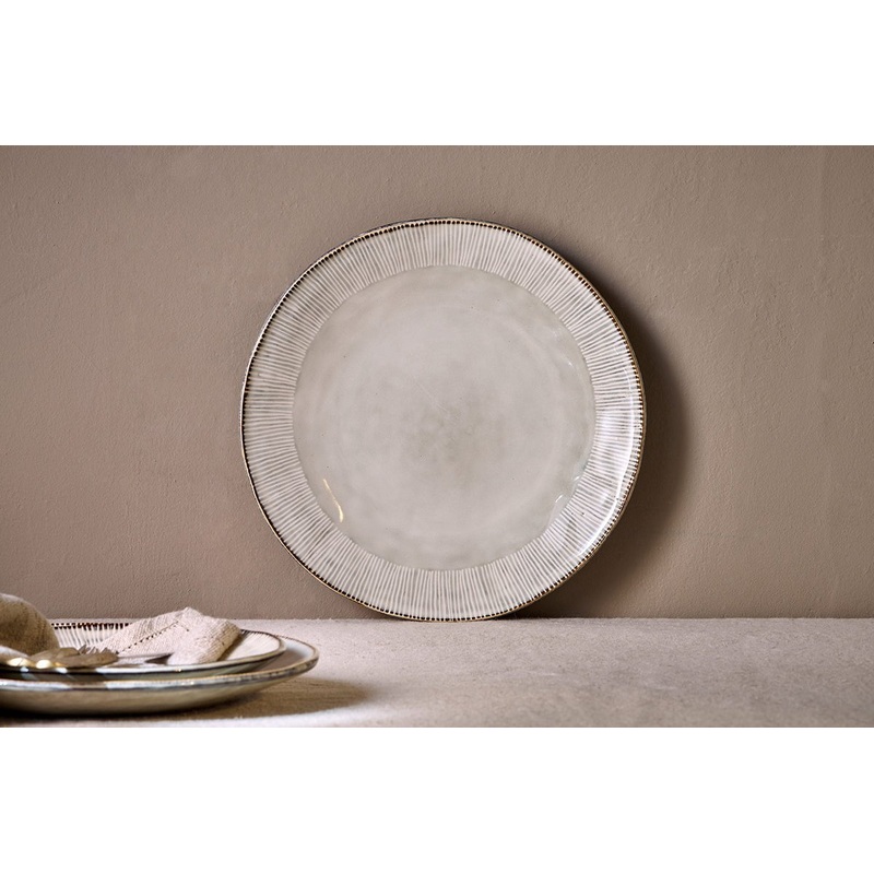 The unique detailing on our Malia dinner plates bring a sense of occasion to the everyday. Handcrafted using traditional methods that have stood the test of time, the products are fired with a reactive cream glaze which responds to the heat of the kiln in any number of unpredictable ways. The end result is a product with distinctive markings and colouration. Our Malia dinner platers are shaped on a potters wheel and finished with a stylish linear pattern that is painted onto the rim by hand. Style with the rest of our Malia collection for a sophisticated dining set.
