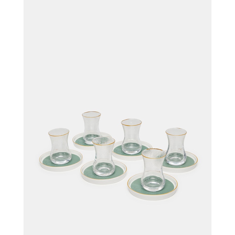 Elegant 12-piece Arabic tea set made of clear glassperfect for traditional serving with a modern touch.Section: Home-DiningColour: ClearPattern: PlainSet Includes: 6x Cups 6x SaucersSize/Dimensions: 6.3 ozMaterial: New Bone ChinaStyle No: 131538062