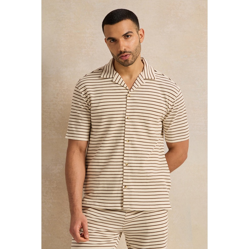 The men beige striped lounge t-shirt is designed for comfort and casual style, making it an ideal choice for relaxed settings. Featuring a soft fabric blend, this t-shirt offers a lightweight feel that is perfect for lounging at home or running errands.Gen
