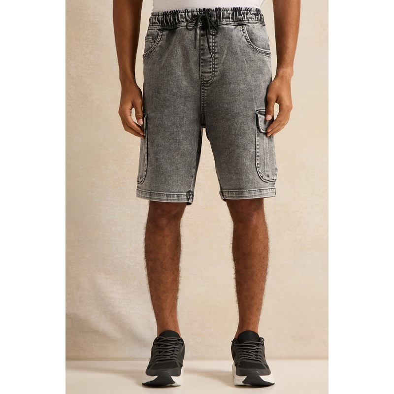 Experience maximum comfort by wearing thesedenim shorts. Theseshortshave an elasticated waistband and convenient pockets for added functionality.Gender: Men's ClothingColour: GreyPattern: PlainFit: Baggy FitModel Wears:MediumModel Stats: Waist71cm, Height