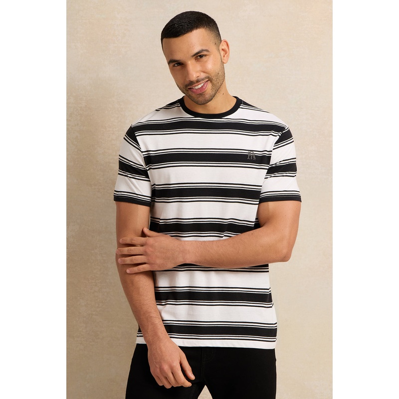 Men White And Black Striped T-Shirt