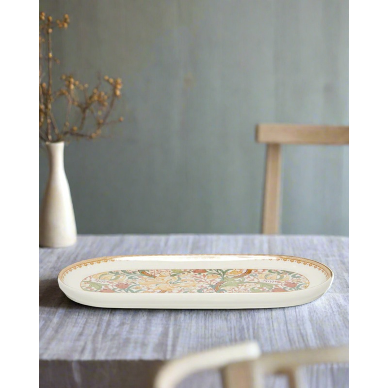 Serve your culinary creations in style with our elegant serving platter, ideal for entertaining or everyday use.Section: Home-DiningColour: MulticolourPattern: EmbellishedSize/Dimensions: Width:33 x Depth:16.5cmMaterial: New Bone ChinaStyle No: 131534379