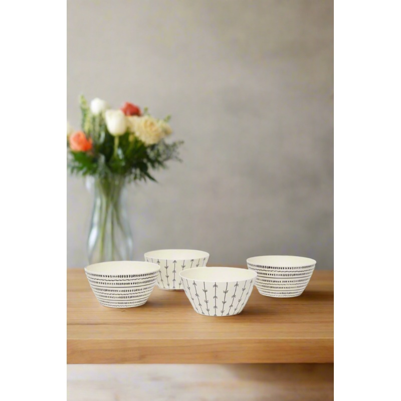 Elevate your dessert presentation with this Bamboo Bowl Set. It combines natural elegance and durability for an eco-friendly touch on your table.Section: Home-DiningColour: MulticolourPattern: FloralSet Includes: 4x Bowl SetDimensions: Diameter 14cmCare In