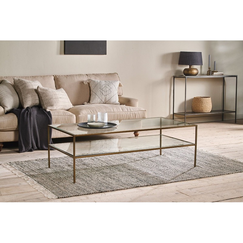 Our elegant Nakuru coffee table has a refined yet sturdy feel. Its pared back design adds a sophisticated note, while its size and shape means its ideal for arranging in front of a sofa. A practical glass shelf makes it easy to store decorative items while