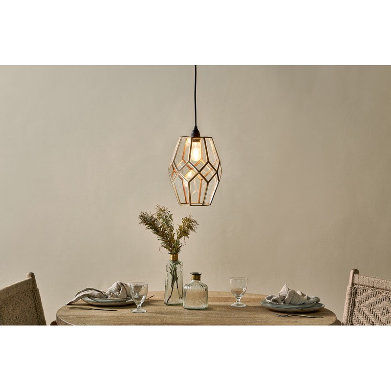 FKX85744076717Nazat Panelled Glass Easy Fit LampShade - Clear & Antique Brass