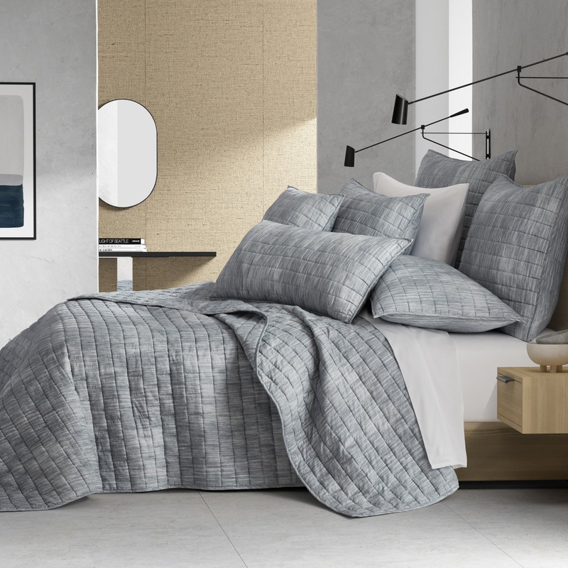 The Nils Quilt Set offers a touch of texture to reshape your space into a calming contemporary retreat. The mediumweight quilt is great on its own or layered and is constructed with a distressed texture print in soft grayish-blue tones on both sides. Craft