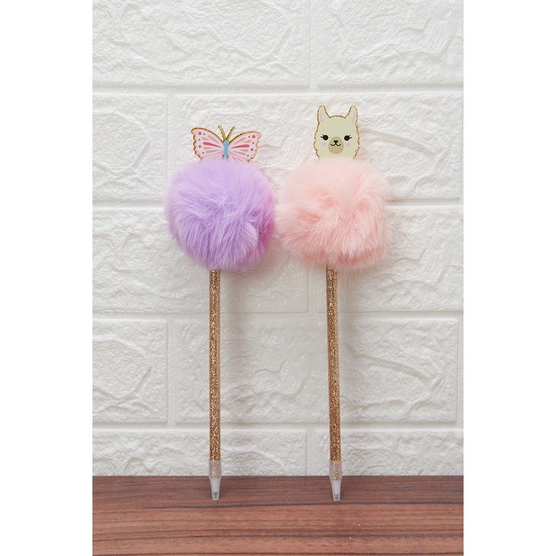 • Adorable fluffy pens featuring cute animal toppers. The pens have a soft, plush texture and come in two colours: purple with a butterfly and pink with a llama. Perfect for adding a touch of whimsy to your stationery collection.