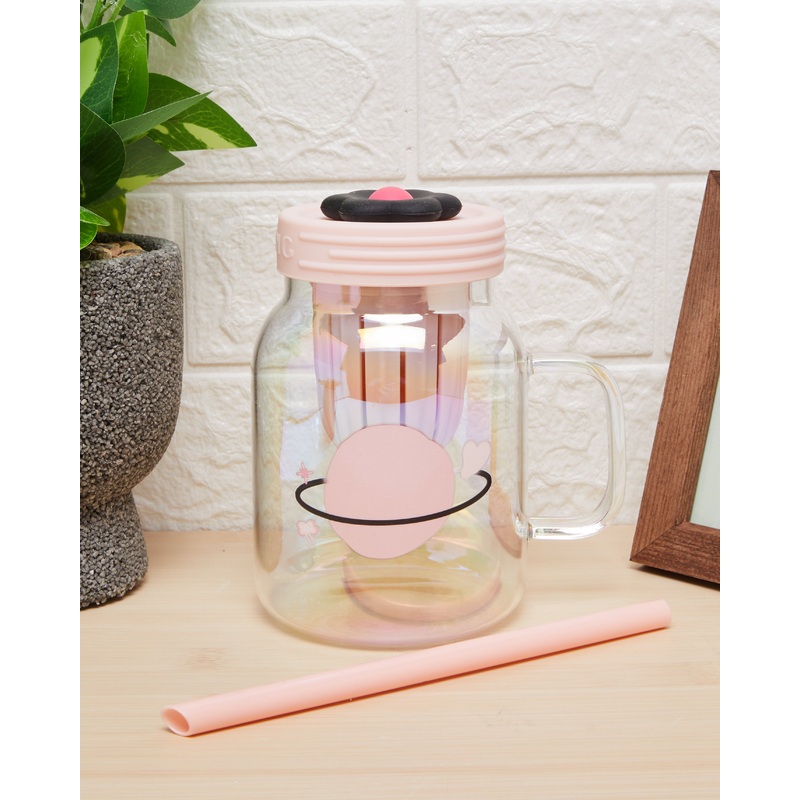 Pink Glass Mason Jar With Silicone Straw & Lid (850ml)