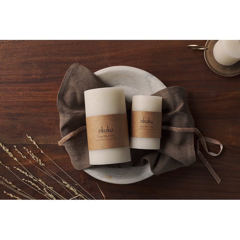 FKX85744077003Rustic Soy Blend Pillar Candle – White – Large