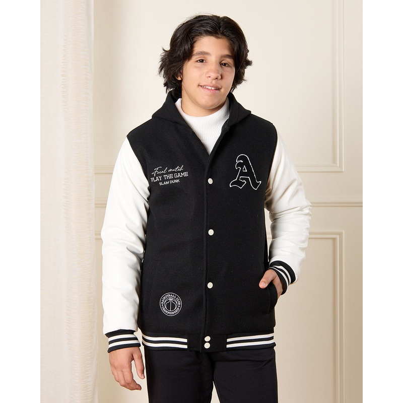 Senior Boys Black Hooded Baseball Jacket