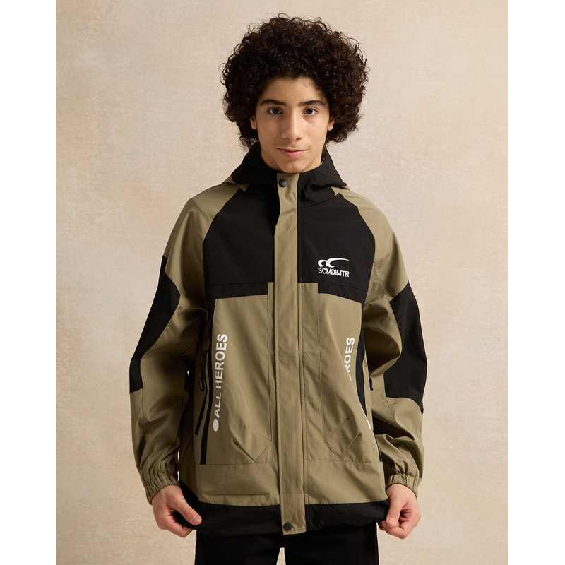 Senior Boys Olive And Black Zipthru Hooded Jacket