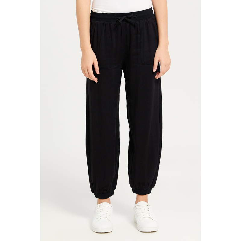 Senior Girls Black Solid Twill Joggers
