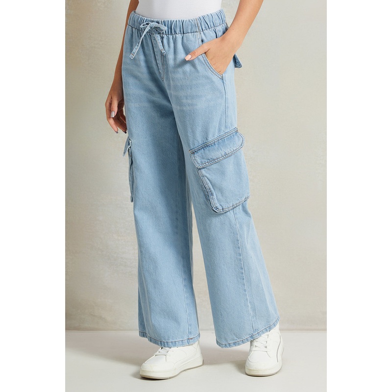 The cargo pockets add a practical and edgy detail, making these jeans perfect for casual outings or street-style vibes.Gender: Senior Girls (8to 14 Yrs)Colour: BluePattern: PlainFit: Wide LegModel Wears: 13-14 Yrs (XL)Model Height: 167cmCare Instructions: