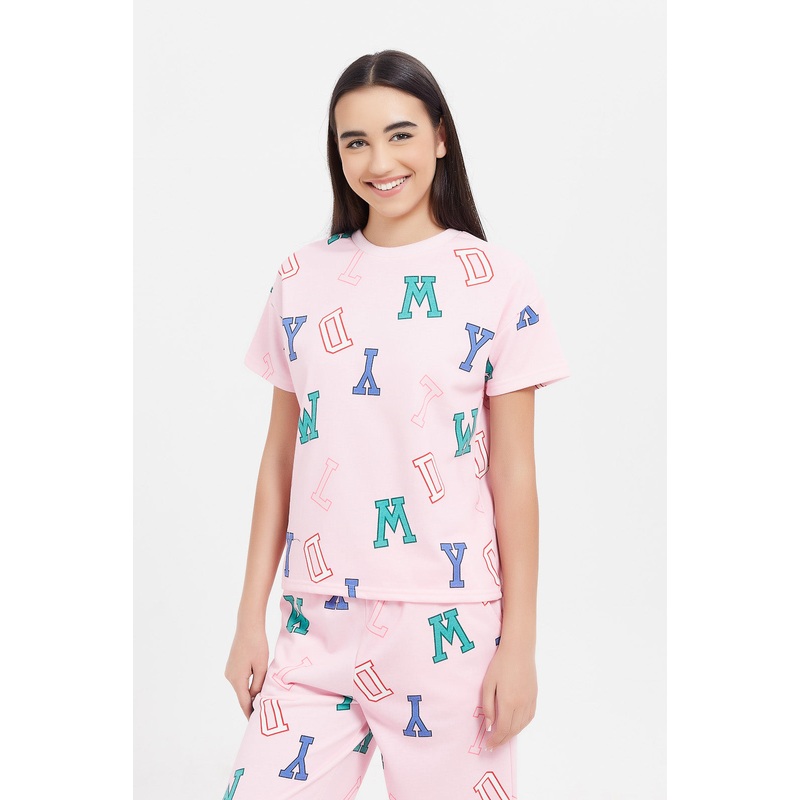 A casual t-shirt for senior girls features an all-over print with short sleeves and a round neck. You can match it with a pair of sneakers and the below culottes for a complete look.Gender: Senior Girls (8 to 14 Yrs)Colour: PinkPattern: Allover PrintNeck: