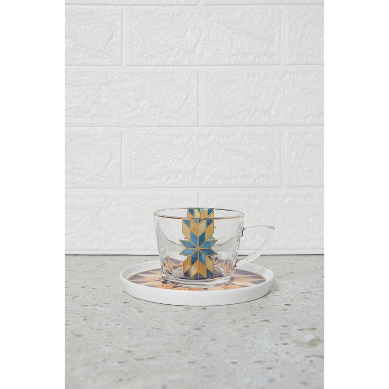 Offers a delicate yet elegant design, perfect for elevating your tea experience. Made from clear glass, the cup and saucer allow the rich hues of your tea to shine through, while subtle printed patterns along the rim add a touch of sophistication.Section:H