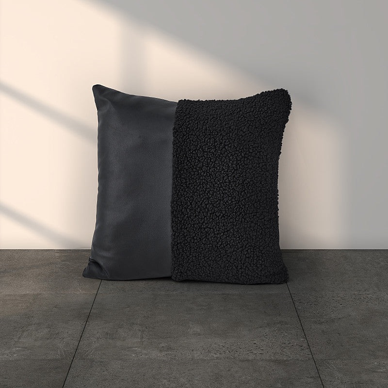 This Varick pieced square pillow marries the smooth sophistication of faux leather with the cozy, textured charm of boucl fabric. The juxtaposition of these materials creates a visual delight. The boucl fabric panel is carefully pieced onto the faux-leather front, offering a tactile contrast that adds depth and character to your decor. With its plush and supportive filling, this pillow is not just a stylish accessory but also a comfortable addition to your seating or bedding arrangement. Whether you’re using it as a decorative accent or for extra comfort while lounging, it’s designed to keep you cozy. Available in Black and Ivory. Pair with the Varick Throw for a complete set.