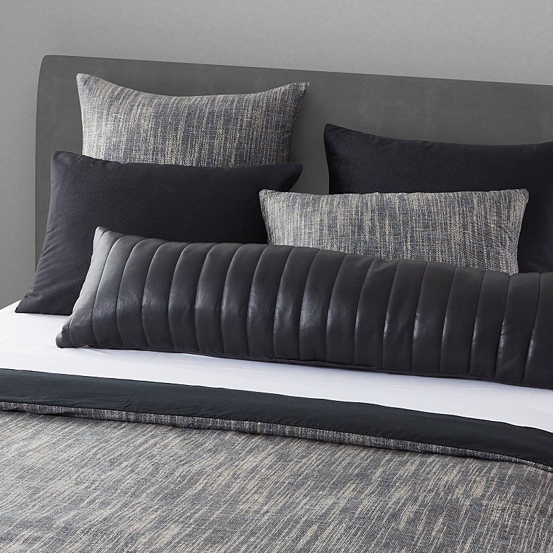 Elevate your home decor with the luxuriously over-sized Varick faux-leather pillow. This stunning pillow is designed to elevate your living space with its sleek aesthetics and luxurious craftsmanship. The channel quilting creates visual interest that’s both striking and sophisticated, while the vegan leather provides a soft and supple hand-feel. Generously stuffed to provide plush comfort and support. It’s perfect for enhancing your relaxation experience, or as a statement piece on your bed. Upgrade your living space with this striking, sustainable accessory today. Available in Black and Ivory. Pair with the Varick for a complete set.