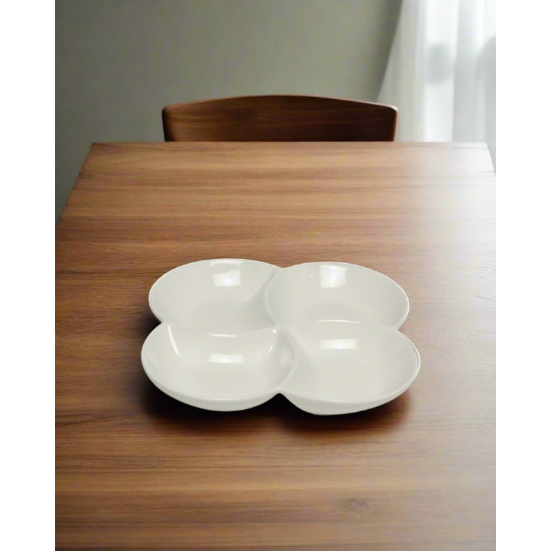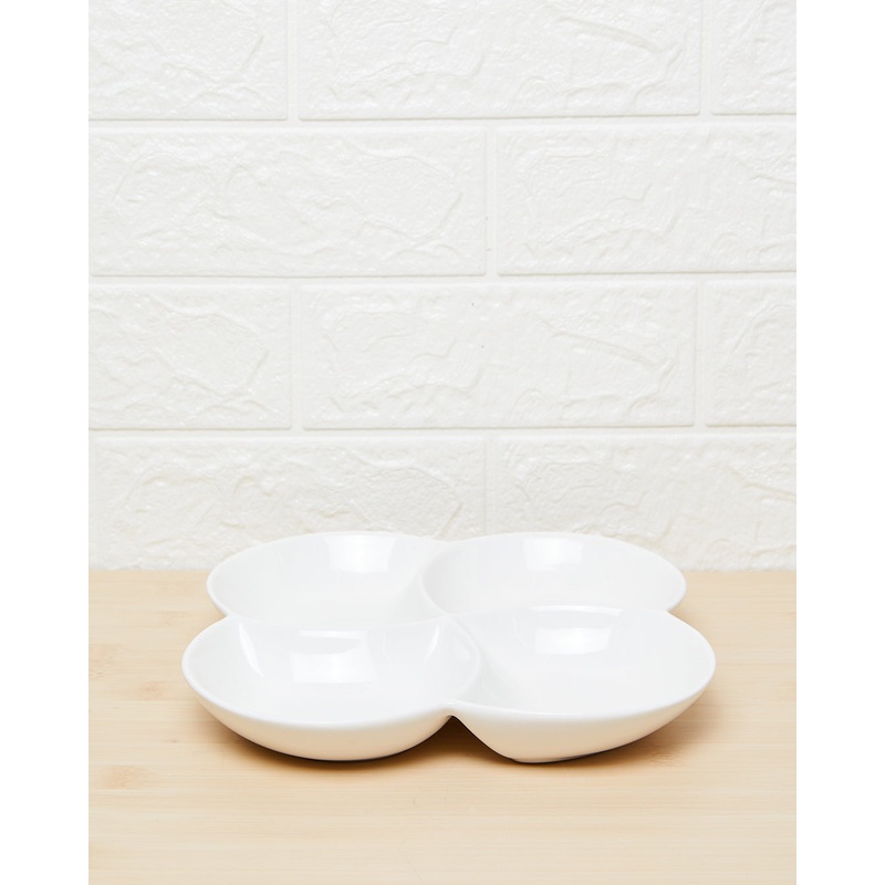 Practical and chic! This sectioned plate features a plain design that enhances its look and adds value to it, ideal for serving a variety of snacks.