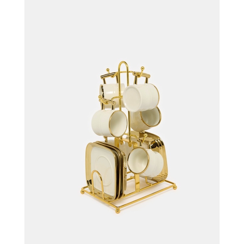 This 13-piece cup and saucer set is in a white and gold classic design. A luxurious-looking set of cups for yourself and your guests.Section: Home-DiningColour: White/GoldPattern: EmbellishedSet Includes: 6x Cup 6x Saucer Plate 1x StandCare Instructions: M