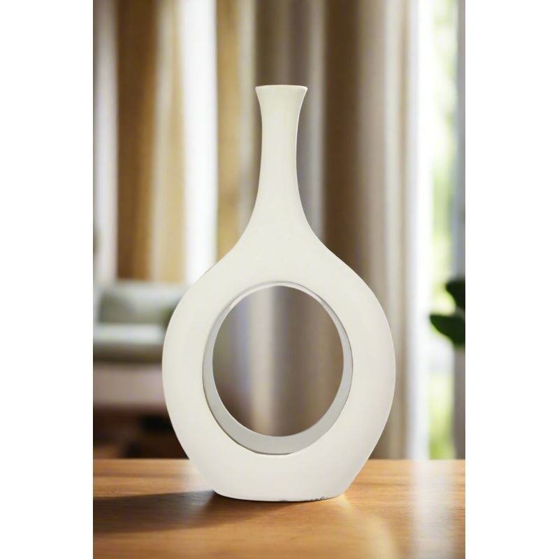 Elevate your space with this elegant decorative vase, featuring a sleek design and timeless charm. Perfect for showcasing fresh flowers or as a standalone statement piece, it adds a touch of sophistication to any room.Section: Home-DecorColour: WhitePatter