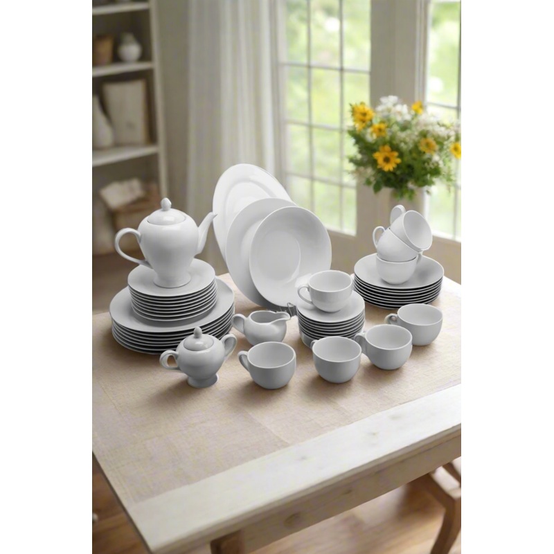 • Add luxury to your table and serve food in the most appetizing way with this whiteporcelaindinner set.
