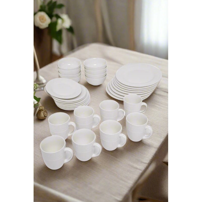 Add luxury to your table and serve food the most appetizing way with this white porcelain dinner set.This set consists of 8 plates, 8 side plates, 8 soup plates and 8 mugs.Section: Home-DiningColour: WhitePattern: EmbossedSet Includes: 8x Plates 8x Side Pl