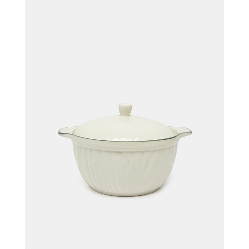 A beautifully embossed white tureen with a matching lid, perfect for serving soups or stews. Adds a touch of sophistication to your dining table.Section: Home-DiningColour: WhitePattern: EmbossedSize/Dimensions: Height 17cm x Width 24.6cm x Depth 20.6cmMat