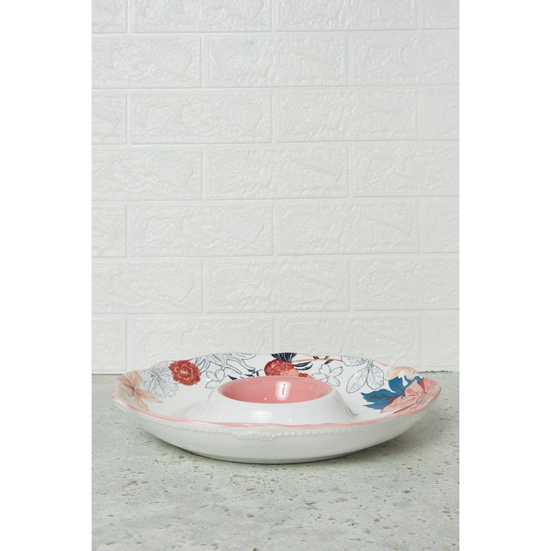 Serve in style with this elegant platter, designed to elevate any dining experience. Its smooth finish and refined design make it perfect for presenting chips and dips. A timeless piece for every occasion.Section: Home-DiningColour: WhitePattern: Floral Pr