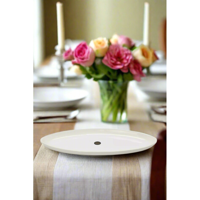 This oval serving plate is food-safe and will be a modern and utilitarian pick for your dining room.Section: Home-DiningColour: WhitePattern:PlainSize/Dimensions: Height 4.3cm x Width 50cm x Length 21cmMaterial: DolomiteStyle No: 130687787